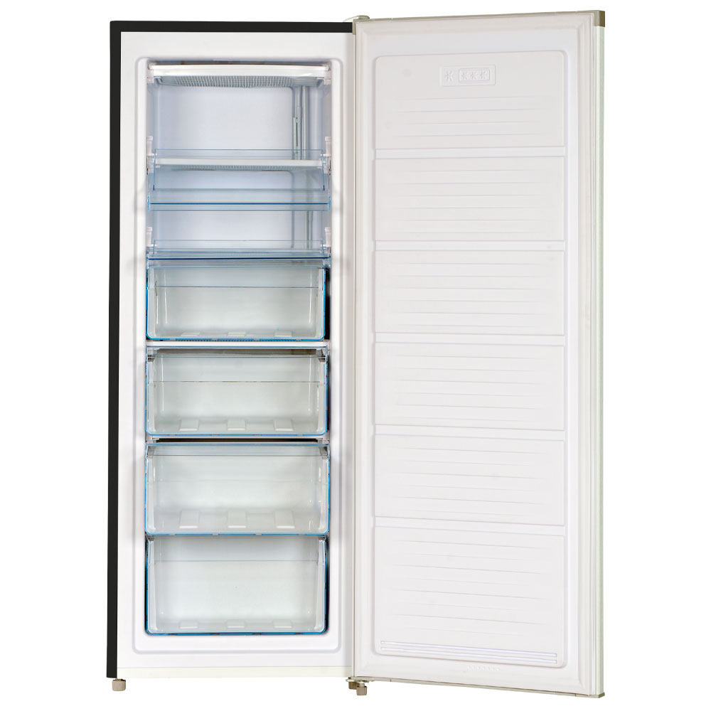 Congelador vertical CMR-250 Lts Negro Capacidad 250 L. Color gris. Frío húmedo. 5 niveles de temperatura. 6 cajones individuales. Temperatura hasta -15o C. Puerta reversible. Medida 138x54x55 cm.