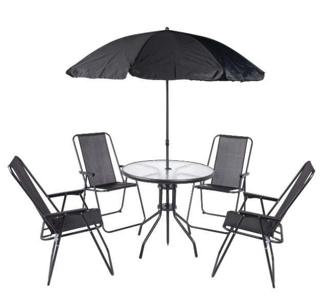 JUEGO DE JARDIN NEGRO GOLEADER 6 PIEZAS MESA REDONDA CON SOMBRILLA GL-25013