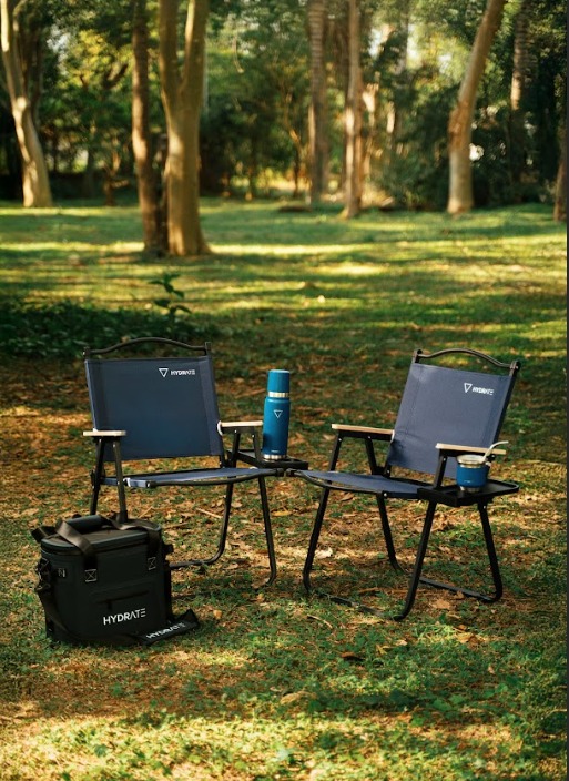 SILLA PLEGABLE CAMPING HYDRATE CON PORTA VASO AZUL (7465)