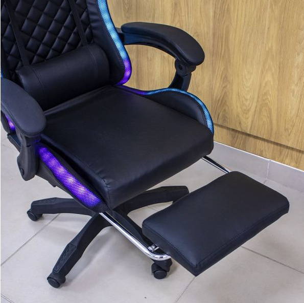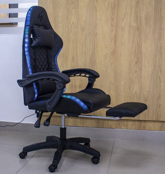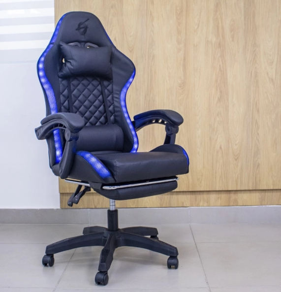 • Iluminación RGB Integrada: Luces LED vibrantes que recorren los bordes del asiento y el respaldo, creando un ambiente gaming inigualable. ¡Sincroniza tu silla con tu setup!